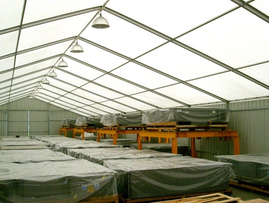 而倉儲篷房作為臨時性建筑。節(jié)約時間成本,快速實現(xiàn)倉庫擴建。倉儲篷房主體結構為鋁合金型材,輕便安全,建筑速度快,24小時可搭建起1000平方米左右的倉庫,縮短建筑工期,快速投入使用,及時解決淡旺季煩惱。